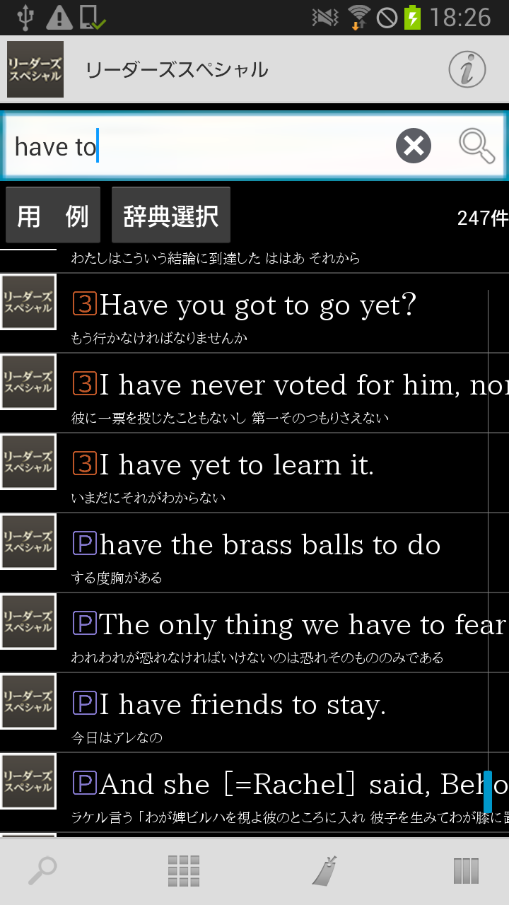 ・「リーダーズ英和辞典 第3版」「リーダーズプラス」をセット辞典として辞書引きすることができます。
