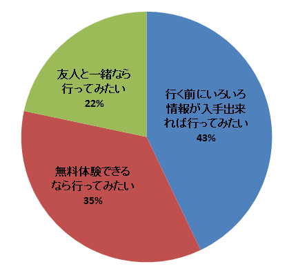 「行く前にいろいろ情報が入手出来れば行ってみたい」=43%