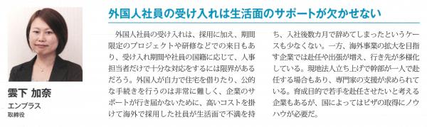 先日、弊社取締役の雲下が「日本人材ニュース」様より外国人社員の採用後のケアの重要性について取材を受けました。