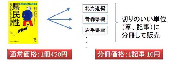 「パピレスプラス」は、書籍を1冊ずつ販売する従来の電子書店とは異なり、書籍内容を分冊し、章・記事ごとに販売するスタイルを採用しております。これにより、お客様は、書籍内容に含まれたさまざまな情報(章・記事)の中から、自分の欲しい情報のみを選び出し、すぐ簡単に読むことが可能となります。