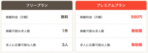 ※求人掲載、応募、採用といった基本的な機能はすべて0円(フリープラン)でご利用頂けます。