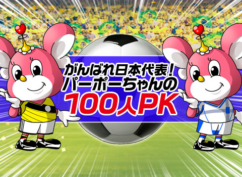 モバイルインターネットサービスを提供する株式会社GNT(本社:東京都渋谷区、代表取締役:ホー・トゥン・ラム、 http://www.gnt.co.jp/ 、以下GNT)は、本日 6月19日(木)より、Android/iphoneアプリ「出動!美女ポリス」内にて、頑張れ日本代表イベント『パーポーちゃんの100人PK』を開催いたします。