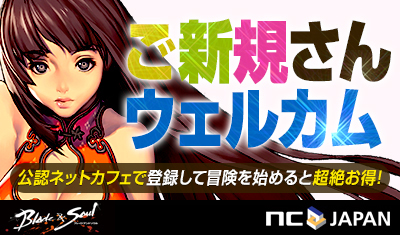 オンラインRPG『ブレイドアンドソウル』をサービス、運営しているエヌ・シー・ジャパン株式会社(本社:東京都渋谷区、代表取締役:金 澤憲(キム テクホン)以下、エヌシージャパン)は、2014年6月24日(火)定期メンテナンス終了後から2014年9月16日(火)定期メンテナンス終了前に、公認ネットカフェPayNetCafeシステム導入店舗にて「ご新規さん、ウェルカム!」キャンペーンを実装いたします。