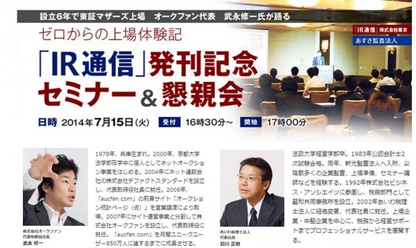 「ゼロからの上場体験記」「上場して何が変わったのか」「IPOまでの紆余曲折」など武永氏の経験談も交え、たっぷりお話いただく。