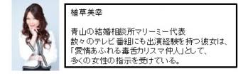 毒舌ながらも優しく、結婚への道を指導していくカリスマ仲人の植草美幸が、