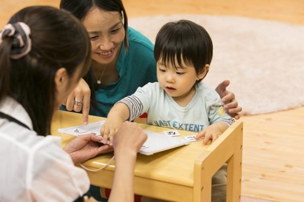 TOEベビーパークは、従来の幼児教室とは異なり「ママが生徒」となる乳幼児親子教室です。