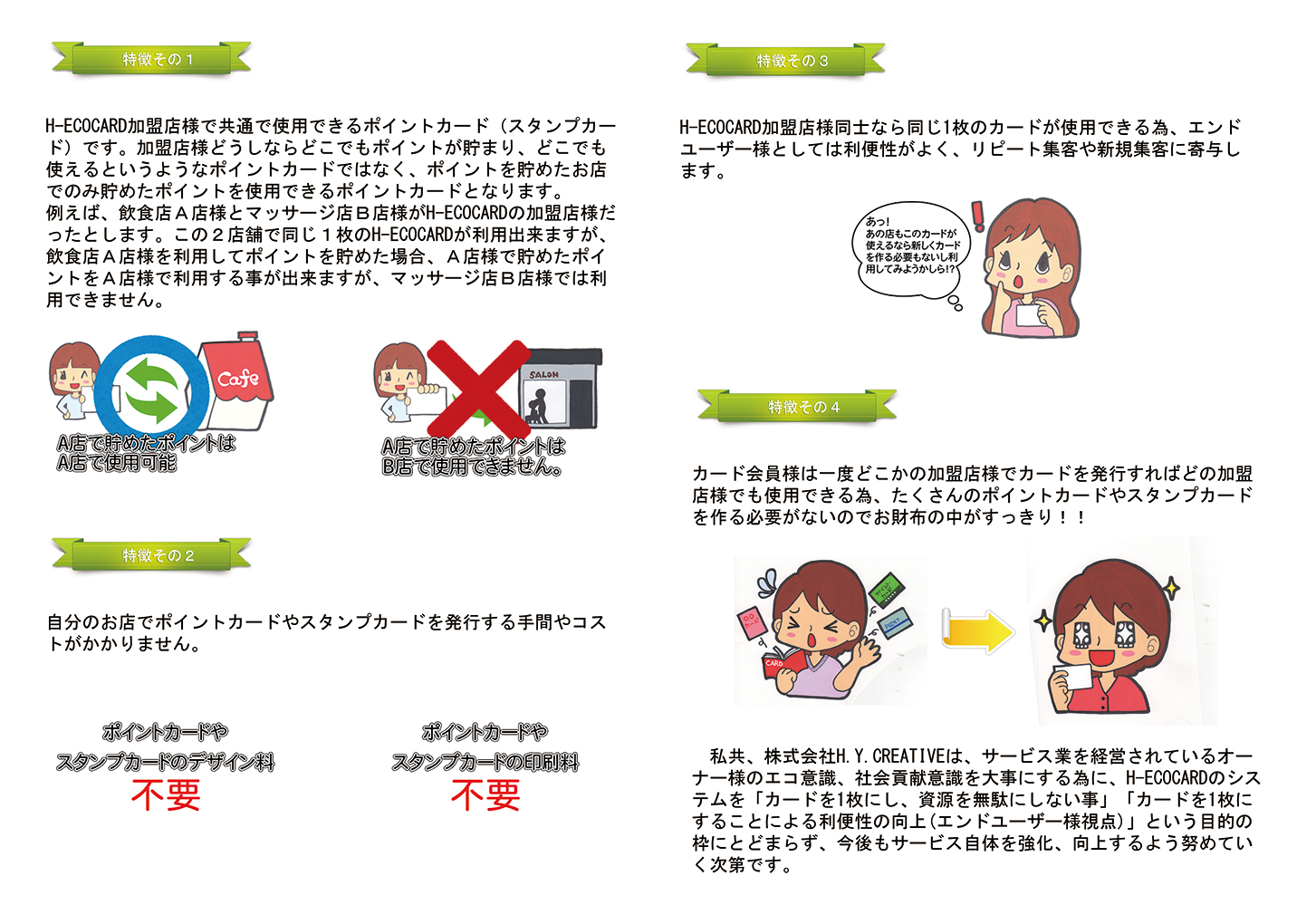 「H-ECOCARD」の特徴は、他社が運営する共通ポイントカードとは異なり、加盟店様同士ならど