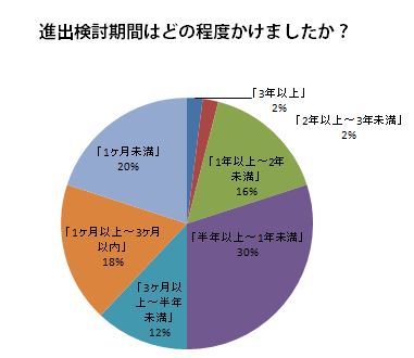 進出するまでの「検討期間」について質問したところ、下記のような結果になりました。