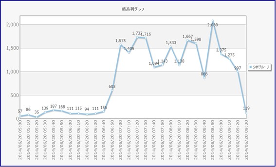 図1 2014/6/20 5:00~9:30ツイート件数推移(10分ごと)