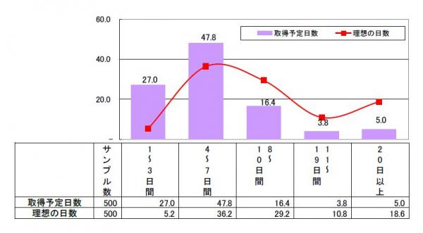 尚、理想の日数について「1~3日間」で十分と考えている層も5%程度。