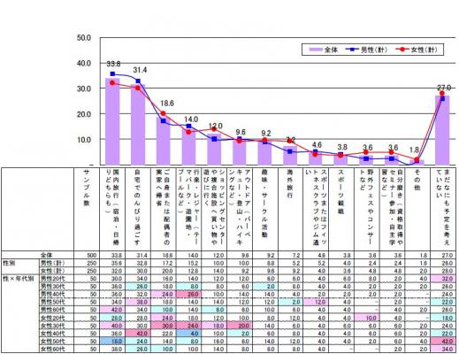 夏休みの予定は「国内旅行」がトップ、次いで「自宅でのんびり」という回答も多数