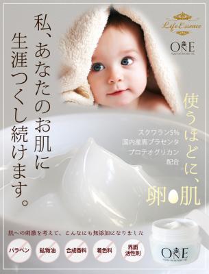 オールインワンゲルタイプの化粧品『ONE』は、大容量100g、無添加(パラベン・界面活性剤・合成香料・着色料・鉱物油フリー)、敏感肌にも優しいオーガニック系オールインワンジェルです。国内産馬プラセンタ・注目成分プロテオグリカンも配合し、スクワラン含有量は業界トップクラスです。