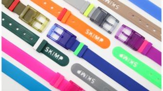 「SKIMP」初の商品化されたラバーベルトで、クリアハードケース入、オリジナルマーカー入と2種類あります。商品開発のきっかけは、日本への旅行の際、空港での不快なセキリュティーチェック時にフランス人デザイナーは思いつきました。金属を使用しない、ネオンカラーを基調とした、明るいカラーが特徴です。ラバーべルトである為、丈夫で天候も気にせず使用可能です。