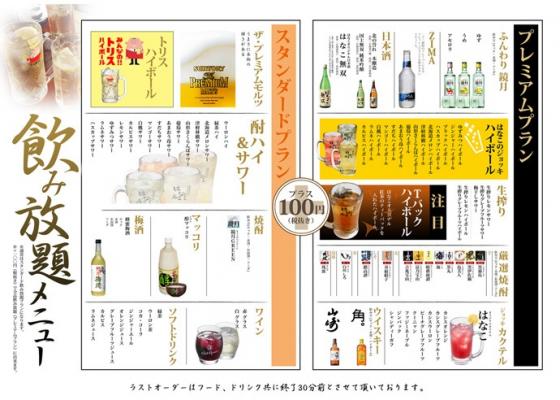 トリスハイボールや酎ハイ&サワーもモチロン飲み放題です。