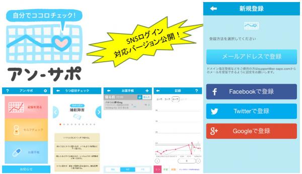 「アン-サポ」は精神科医学博士・渡部芳徳医師とイワト・コーポレーションが考案・企画したスマートフォン・アプリです。株式会社日本ブレーンが開発を担当し、このたび、ご要望の多かったSNSログイン連携機能を実装した新バージョンをリリースしました。