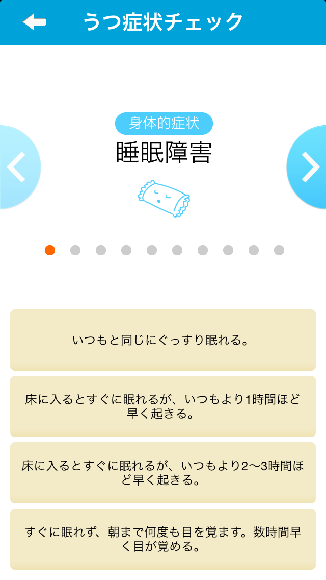 20問のうつ症状と不安症状に関する質問に答えていただくだけのシンプルなセルフチェックです。