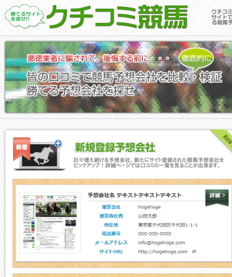 ・予想会社登録(運営会社・運営責任者・所在地・電話番号・メールアドレス・サイトURL・会員登録区分)