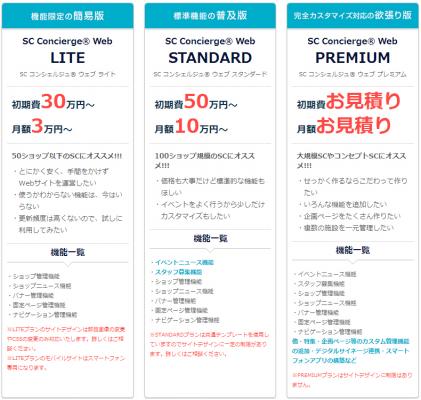 パルコ・シティでは、SCのニーズに応じて3種類のパッケージ(ライト / スタンダード / プレミアム)をご用意。「とにかく安く、手間をかけずWebサイトを運営したい」という施設向けの「ライトプラン」では、月次3万円、最短1ヶ月で新しい仕組みを利用できます。