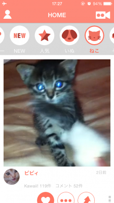 また犬や猫といったカテゴリ別に視聴可能なので自分の好きな動物だけ観ていくこともできます。さらにお気に入りの動画にはコメントをしたりkawaii!をつけて交流することもできます。