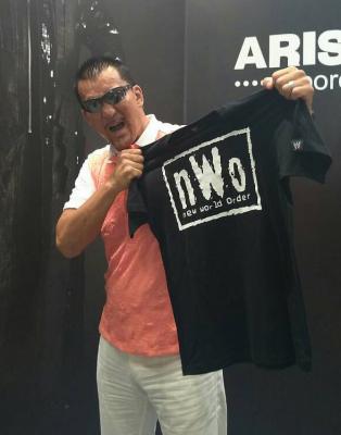 今回、nWo Tシャツ復活が実現に至ったのは、アリストトリストと、ブランド・キャラクターのライセンス業務を行っている株式会社イングラムが、ライセンスエージェント契約を締結。イングラムを通じて、現在nWoの版権を持つWWEと交渉を持ち、両袖にアリストトリストとWWEのロゴが入る『ダブルライセンス』で販売されることになりました。