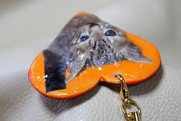 写真がそのまま立体になります。写真ではストラップが付いていますが、革チップには小さな穴が