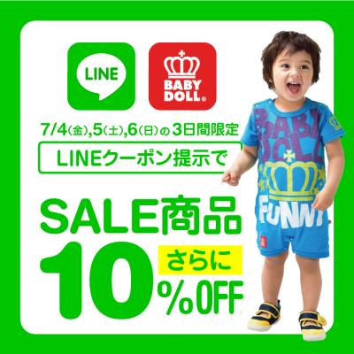ベビー・キッズ服ブランドBABYDOLL(ベビードール)がBABYDOLL・STARVATIONS各店にて、[週末限定!LINEクーポンでSALE品さらに10%OFF]を7/4(金)より3日間限定でスタート!