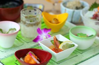 雨の日が続く中、初夏らしくさっぱりとヘルシーなメニューとなっています。和花ランチは、地元「一宮町の花」でもある山百合御膳です。