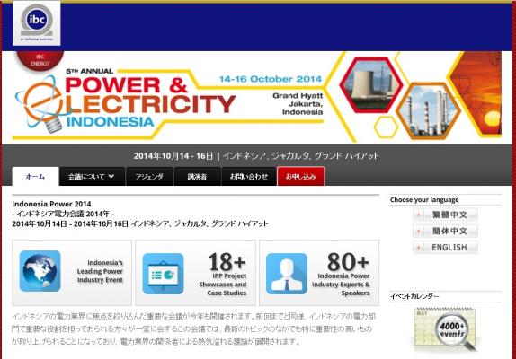 株式会社グローバル インフォメーションでは、皆様の利便性を図る為に、日本語、韓国語、中国語で「Indonesia Power 2014-インドネシア電力会議 2014年」の情報を提供するとともに、会議の参加のお申し込みを承っております。