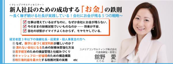 2014年7月24日(木)、税理士のユメリアコンサルティング株式会社 代表取締役舘野愛(たてのあい)氏をスピーカーに招き、セミナーを開催します。