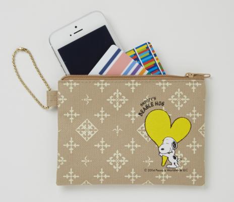 付属のミニポーチには、黄色いハートをぎゅっとハグしたスヌーピー