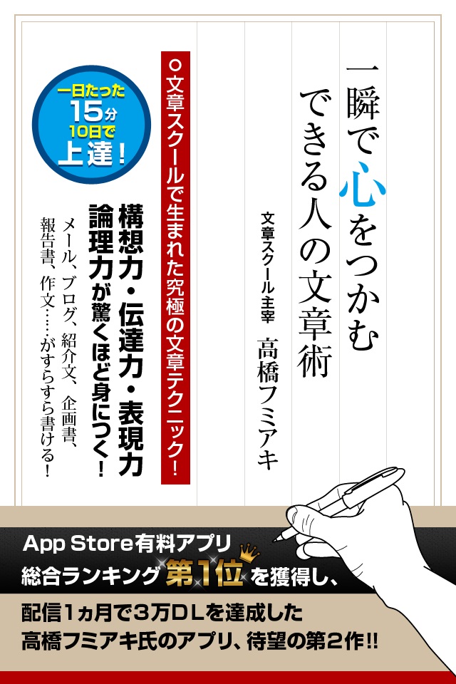 ※この電子書籍アプリは「一瞬で心をつかむできる人の文章術―1日たった15分10日間で上達!」を底本としてアプリ化したものです。