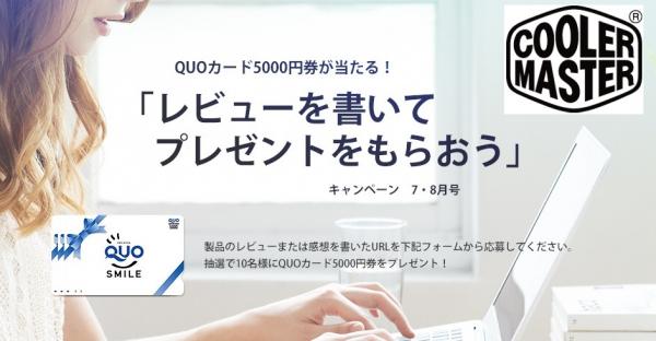 Cooler Master Technology Inc.は、QUOカード5000円券が当たる!『レビューを書いてプレゼントをもらおう』レビューキャンペーン7・8月号を2014年7月11日(金)から実施いたします。