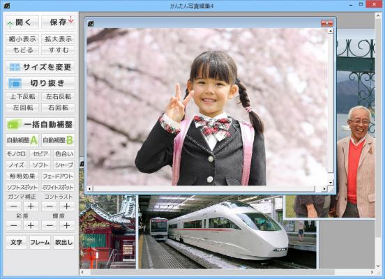 お手持ちの写真を読み込み、各機能のボタンをクリックするだけのマウス操作で
