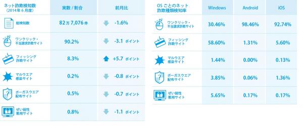 BBソフトサービスの「Internet SagiWallTM(インターネットサギウォール)」で検知したデータを基にした、2014年6月度のインターネット詐欺リポートです。