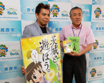 株式会社メディクリエ(茨城県つくば市)は茨城県協力の元、茨城県の魅力をPRする茨城県産アニメーション『あぐかる』の新シリーズ『あぐかるPLAY WITH IBARAKI編』の制作を開始。7月4日(金)に公開となった「第3話筑西市真岡鐵道」のDVDを、『あぐかる』の監督・芦名みのる氏が筑西市役所を訪れ、須藤茂筑西市長に贈呈、完成を報告した。