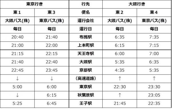 東京バス(大阪バスとの共同運行)「ニュースター号」に関しまして