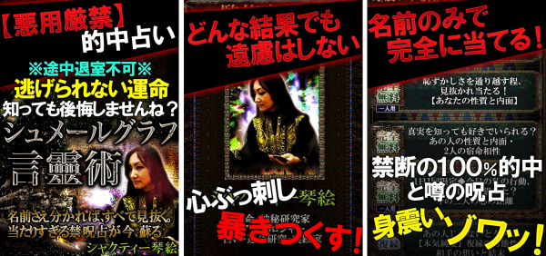 ・アプリ名称:『悪用厳禁◆現実100%名前占い【シュメール呪占】』