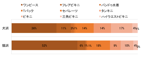 「水着」という切り口でも、犬派と猫派で行動傾向や趣向が異なるようです。