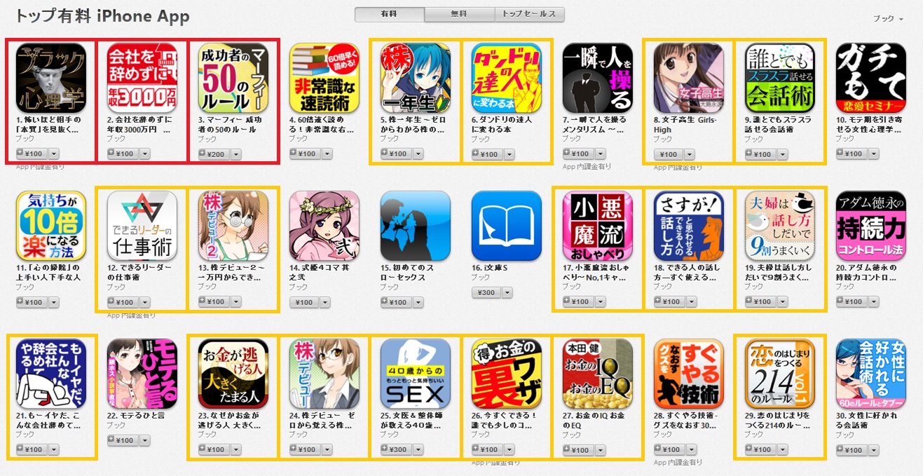 iPhone・iPad電子書籍アプリ1位「怖いほど相手の「本質」を見抜くブラック心理学」、2位「会社を辞めずに年収3000万円」、3位「マーフィー 成功者の50のルール」の3作品がランキング1~3位を獲得!
