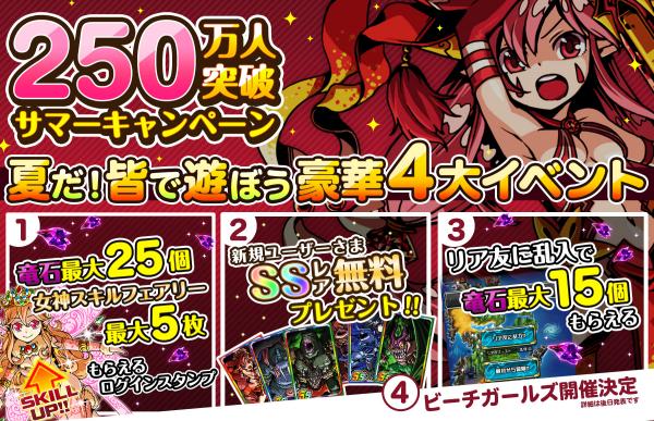 これを記念して、2014年7月18日(金)より期間限定で『250万人突破サマーキャンペーン』を開催いたします。豪華な
