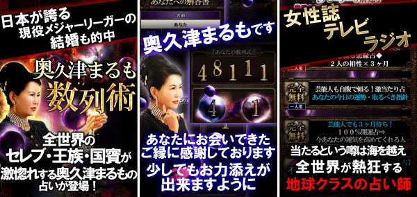 ・アプリ名称:『TV絶賛×結婚的中◆当たる数列占い◆奥久津まるも』