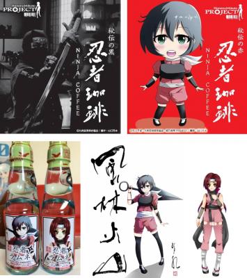 第1弾のラインナップ商品は「忍者珈琲(2種)」「忍びの香茶」「忍者ラムネ」となっている。