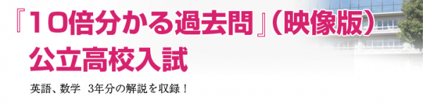 この『10倍わかる過去問(映像版)』公立高校編は、公立高校入試の解説映像授業を、PC、スマホ、タブレットで受講できるサービス。過去問の解説は、トッププロ講師が担当。図解を豊富に用いたわかりやすい解説や、各問題の解き方のポイント、受験本番での時間配分の仕方など、トッププロ講師のノウハウを盛り込んだ内容。県立高校入試の過去問3年分(平成26、25、24年度) 英語・数学の問題の解説を収録している。収録時間は各教科約5時間。価格は1教科・税抜8,400円(3年分)で、英数セットで税抜12,400円(3年分)。