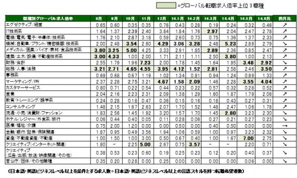 ◆ 職種別グローバル転職求人倍率