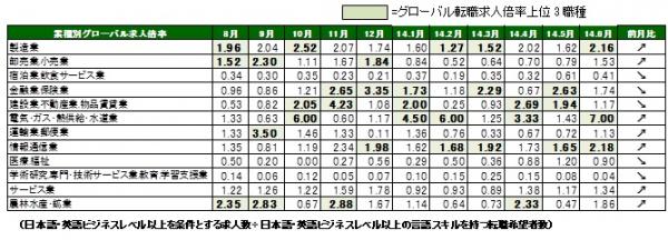 ◆ 業種別グローバル転職求人倍率