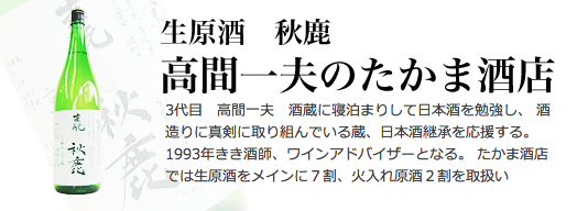 「生原酒 秋鹿 3代目高間一夫のたかま酒店」とは