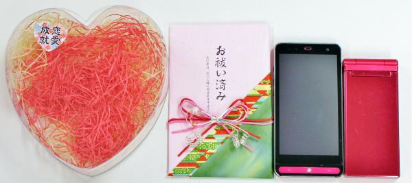 内容物:携帯電話、恋愛成就お祓い済み証明シール、梱包物