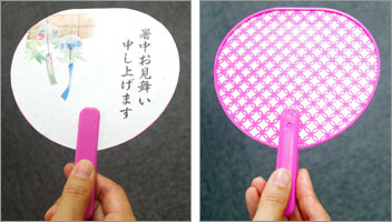 うちわは、封筒に入れて暑中見舞いとして郵送することができます(定形外)。