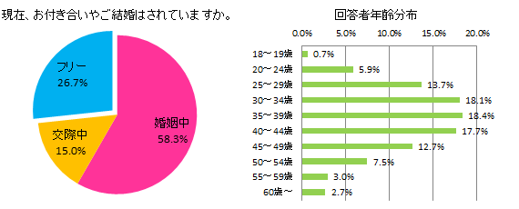 インターネットに多くの時間を割くアフィリエイターですが、リアルの交友関係に関する調査の一つとして交際率・婚姻率を調べてみました。結果は実に7割以上がパートナーあり。メイン年齢層が30代~40代ということもあり、婚姻率も約6割と高い比率になっています。