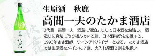 生原酒 秋鹿 3代目高間一夫のたかま酒店